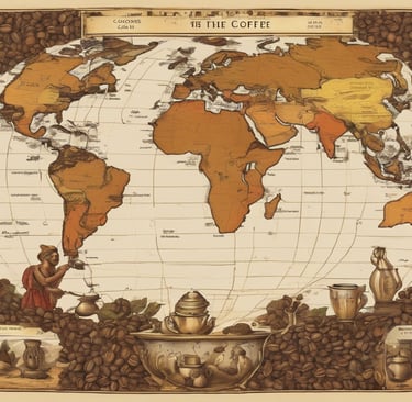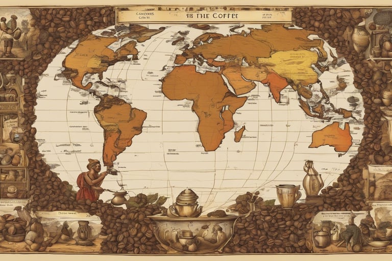 The story of coffee has its origins in myth and legend, began spreading through global trade routes from the Middle East and Africa to Europe starting in the 17th century, and was eventually cultivated on a massive scale in the Americas and Asia.
